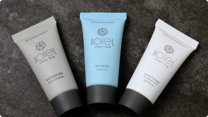 Продукция серии HOTEL clean line безусловно одна из лучших на рынке России и всего Таможенного союза. Косметические средства замечательно наносятся на тело, хорошо пенятся. Шампунь, гель и кондиционер представлены в удобных тубах в объемах 20 и 25 мл. Каждый вид косметики имеет свой цвет, что упрощает использование для гостей. Бутылочки с косметикой наполнены объемом в 35 мл.